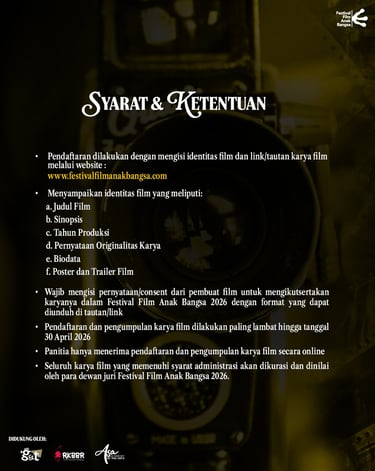 Persyaratan dan informasi lebih lengkap silahkan akses panduannya di www.festivalfilmanakbangsa.com